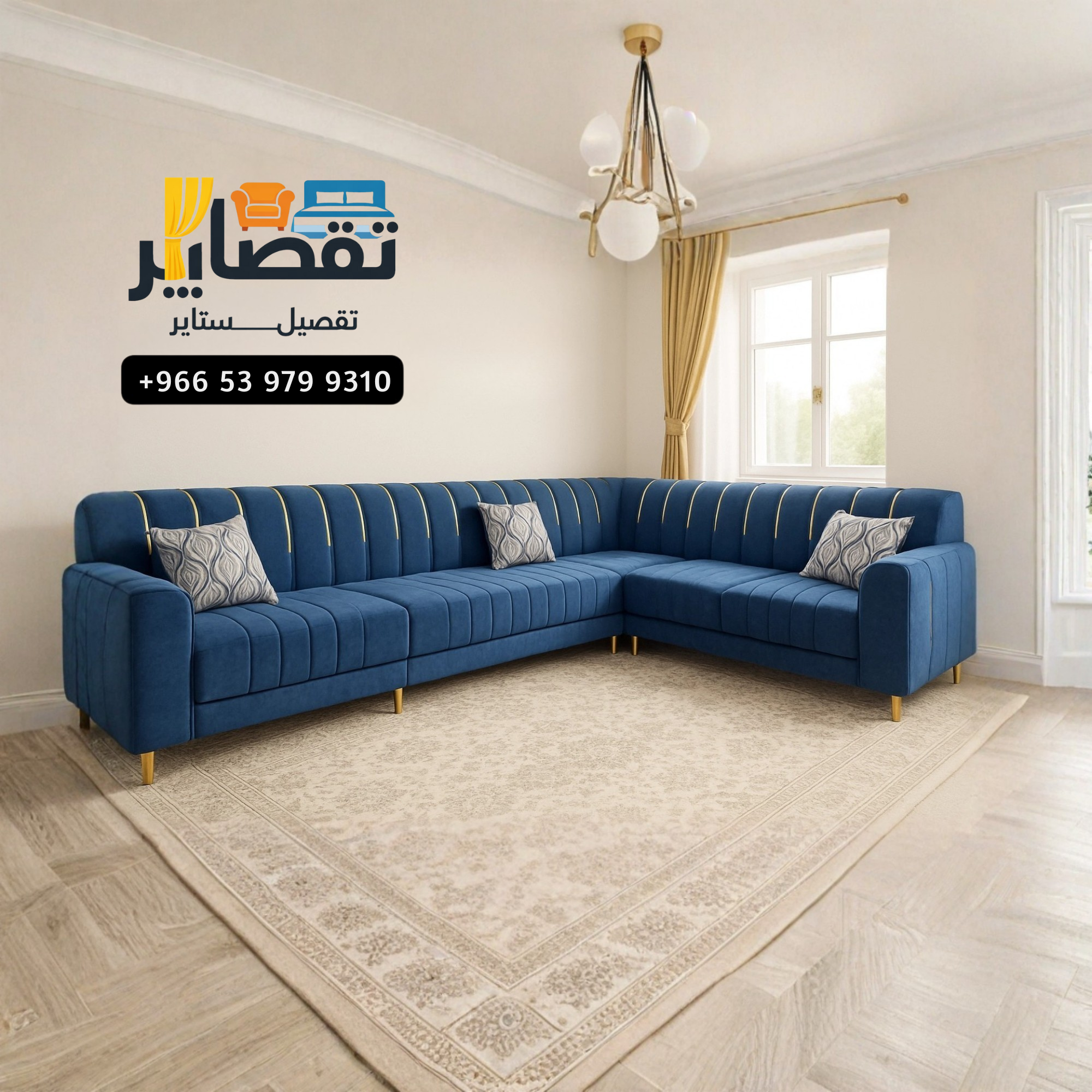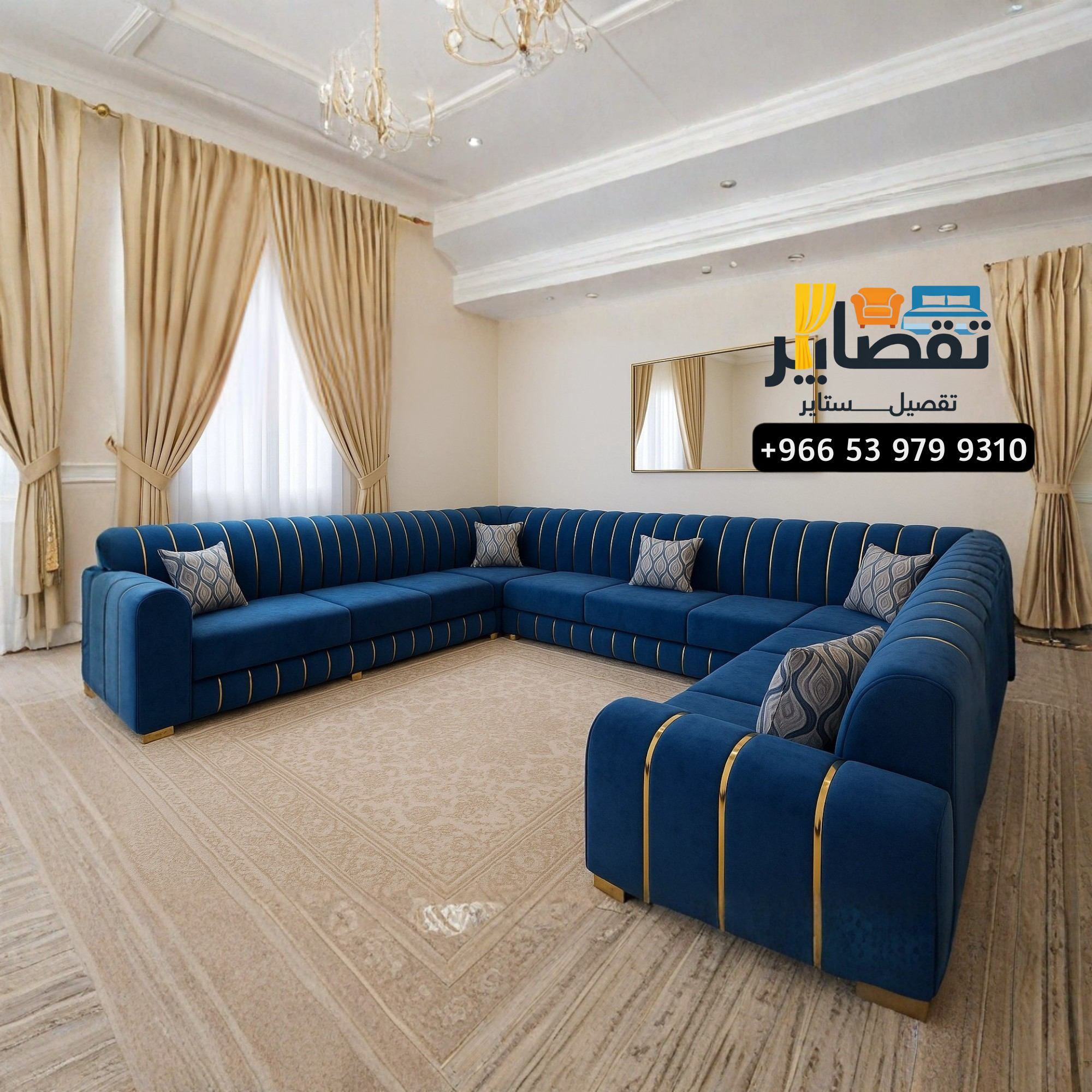 Buy a living room sofa in Riyadh. Perfect for majlis. Custom colors, solid wood, and free delivery. Tafsilstayer Interiors – Haraj Bin Qasim, Riyadh.