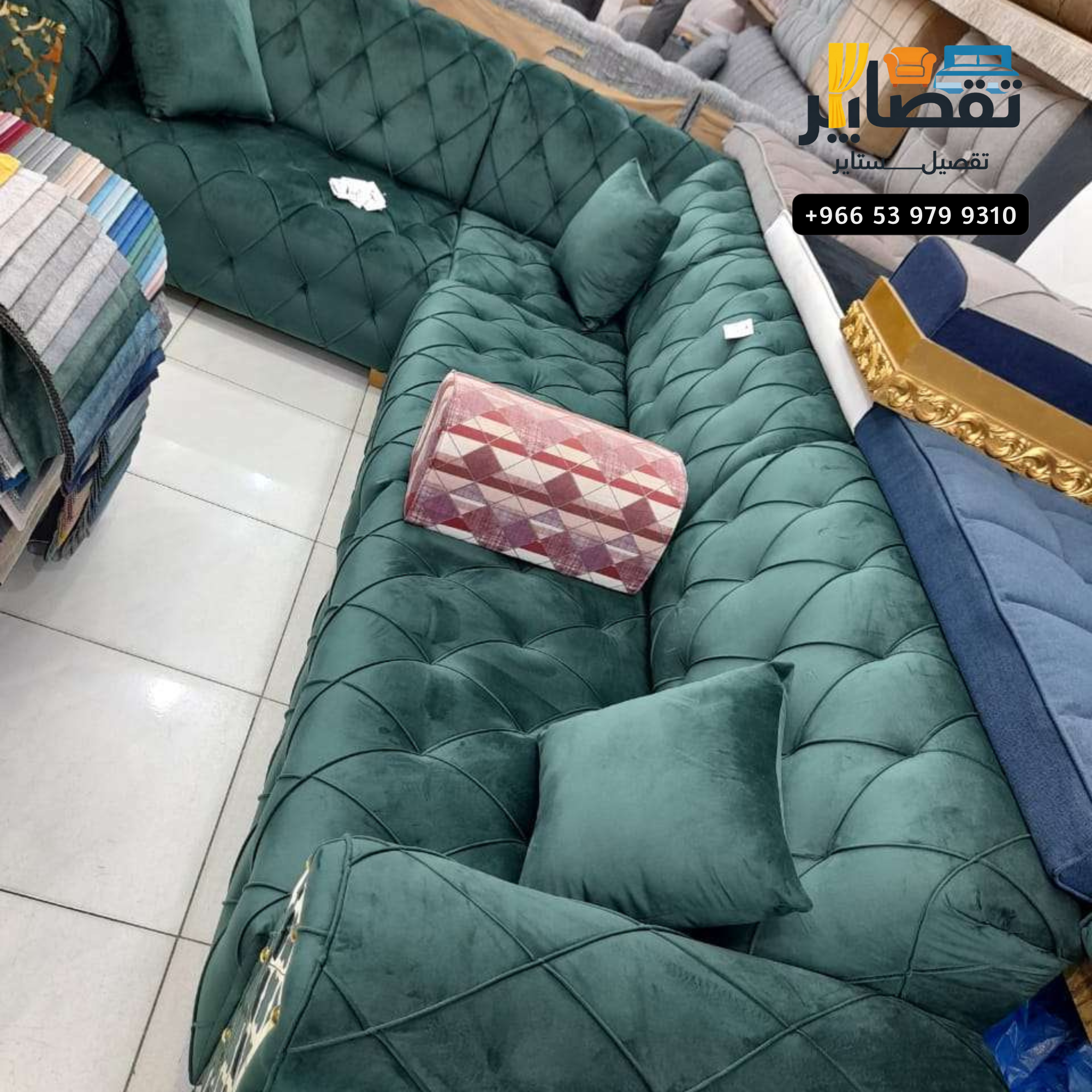 Luxury modern L-shaped sofa with golden touches – the best Tafsil Stayer interiors Riyadh